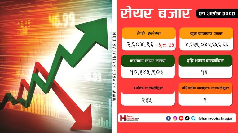 दशैंपछिको पहिलो कारोबार दिन नेप्से सूचकाङ्कमा भारी गिरावट
