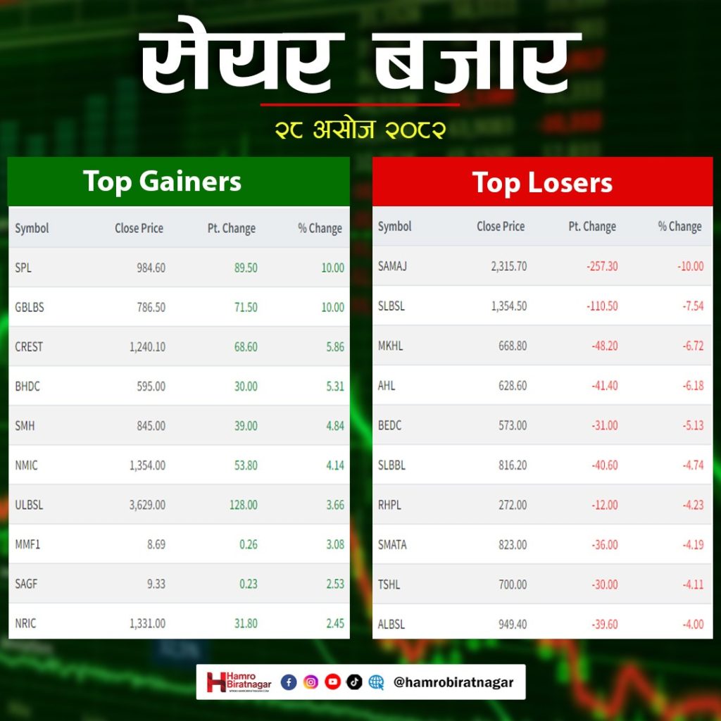 आज ३३ कम्पनीको मूल्य बढ्दा २१४ को घटेको छ ।