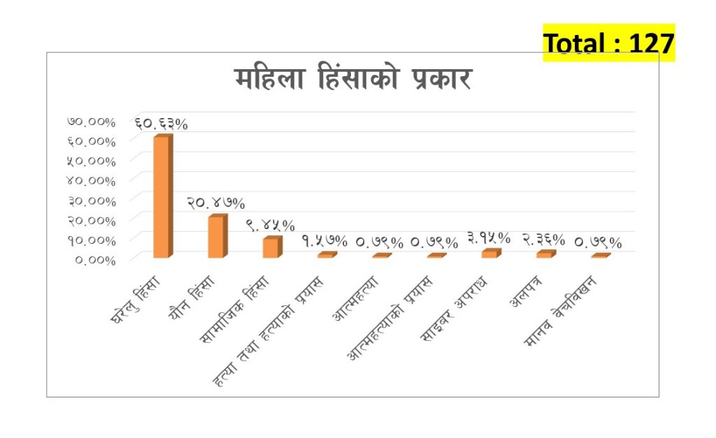 पछिल्ला तीन महिनामा ओरेकको सम्पर्कमा आएका १२७ हिंसापीडित मध्ये आधारभुत शिक्षा लिएकाहरुको संस्था ४६ प्रतिशत रहेको छ । १३ प्रतिशक्ष निरक्षर छन् । यसैगरी माध्यमिक शिक्षा गरेकाहरु ३४ प्रतिशत छन् । स्नातक वा सोभन्दा माथि ४ प्रतिशत छन् । महिलामाथि हुने बलात्कार, यौनजन्य हिंसा बढ्दो क्रममा हुनु चिन्ताको विषय भएको मैनालीले बताइन ।